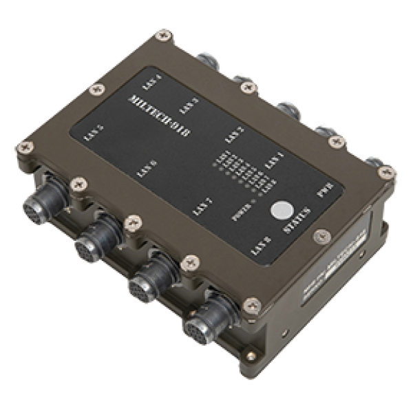 CONTACT US TODAYThe MILTECH 918 is an 8 port ethernet switch which can be remotely managed to deliver Layer 2 switching to optimize on-vehicle communications traffic prioritization between IP-based devices such as communication and navigation systems, sensors, video cameras and targeting systems.