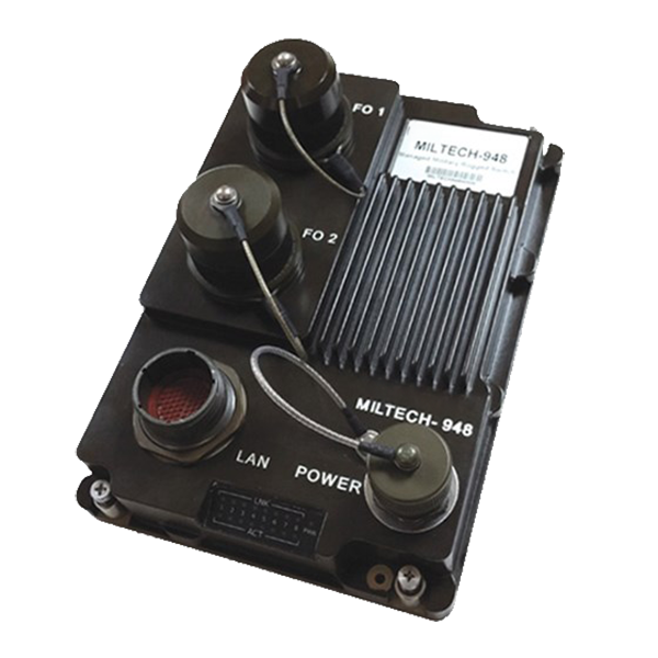 CONTACT US TODAYThe MILTECH 948's flexible configurationallows it to act as both a physical media converter and and gigabit Ethernet switch. With both copper and fiber ports lets it can act as a physical media converter to bridge a change in physical media or extend a LAN connection.